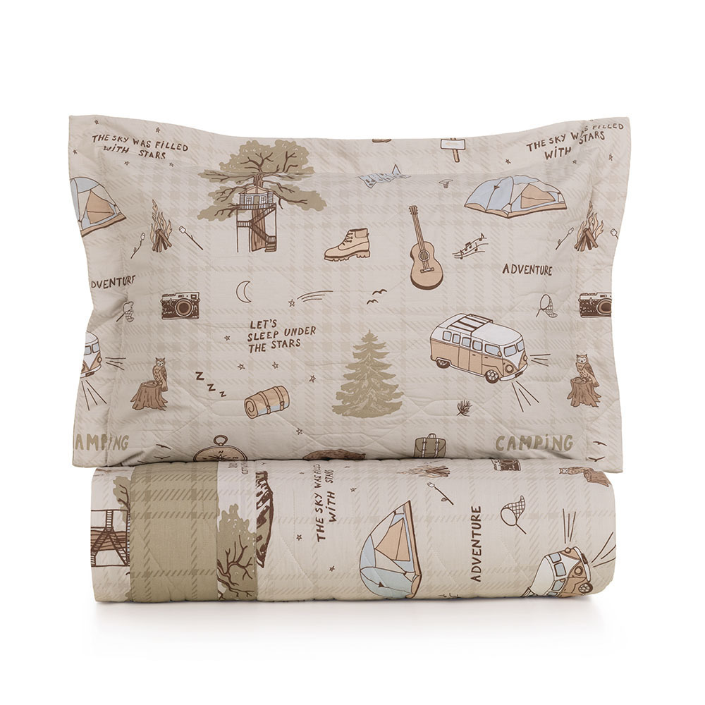 KIT COLCHA COBRE LEITO COM PORTA TRAVESSEIRO PERCAL 200 FIOS 100% ALGODÃO CASAL INFANTIL AVENTURA - 3 PEÇAS